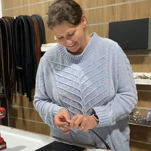 Yes — we stock a curated range of ladies leather belts, from slim everyday styles to modern statement buckles and dresses-friendly designs. Because we have an onsite workshop we are able custom fit our belts for slim waists.